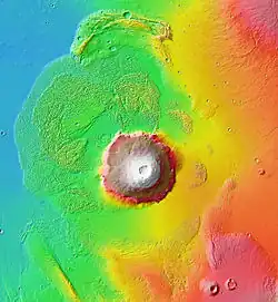 Der Olympus Mons (lateinisch für Berg Olymp), früher auch Nix Olympica, ist ein Vulkan am Rande der Tharsis-Region auf dem Planeten Mars. Er hat eine Gipfelhöhe von über 22 km über dem mittleren Planetenniveau und 26 km über der umliegenden Tiefebene sowie einen Durchmesser von fast 600 km.[1]