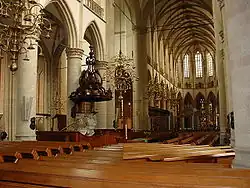 Besondere Aufmerksamkeit verdient das Chorgestühl aus Eichenholz, das Jan Artsz. Terwen 1538 – 1541 im Stil der Renaissance geschaffen hat. Die Reliefs zeigen Szenen aus der biblischen Historie, aber auch einen Triumphzug Kaiser Karls V.