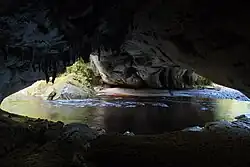 Der Moria Gate Arch ist 19 Meter hoch und 43 Meter breit[1], seine Decke ist mit Stalaktiten und Wurzeln bedeckt.