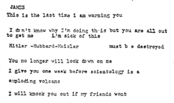 - Scientology-Mitglieder sollten Blankopapier mit Fingerabdrücken Coopers beschaffen, damit einen Drohbrief erstellen und diesen an Henry Kissinger senden.“[1]