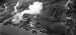 ![]() Der Hafen von Surabaya unter alliiertem Artilleriefeuer | |||||||||||||