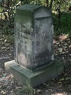 Die aus Sandstein gefertigte Stele entstand als Grabstein für ein 1854 im Alter von vier Jahren in der Elbe ertrunkenes Kind. Die vier Seiten des quaderartigen Steins sind mit Inschriften versehen.