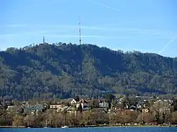 Das Gipfelplateau des Uetlibergs, vom Zürichhorn (von Osten) aus gesehen