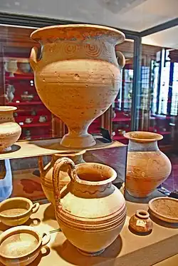 Die zahlreichen attischen Vasen aus Ensérune stammen in großen Teilen aus der von Felix Mouret zu Beginn des 20. Jahrhunderts freigelegten Nekropole und den von L. Sigal zwischen 1929 und 1940 ausgegrabenen Wohnstätten.