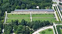 Da die Fensterfront der Hauptfassade nach Nordwesten ausgerichtet werden musste, versah man zur besseren Raumbelichtung die Rückwand mit einigen Fenstern. Im Gegensatz zum nördlichen Zirkelbau, dessen Räumlichkeiten überwiegend der Überwinterung der Kübelpflanzen dienten und somit einfach ausgestattet waren, wurden im südlichen Zirkel bis 1755 zwei reich ausgeschmückte Festsäle eingerichtet.