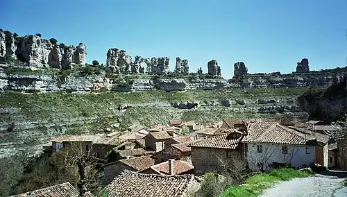 • Der Ort beeindruckt hauptsächlich durch seine von eigenartigen Kalksteinfelsen umschlossene Lage an einem Hang des Ebro-Tals.