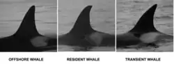 - Oceanic and Neritic Killer Whales (ozeanische und neritische Killerwale): Sie sind weit weniger an Küsten gebunden als die meisten Populationen und kommen vom Kontinentalschelf bis zu 200 Meilen von der Küste entfernt vor. Über die Lebensweise von solchen Schwertwalen ist nur wenig bekannt; die Ernährung besteht offenbar hauptsächlich aus Fisch, schließt aber auch Kopffüßer und Meeressäuger ein. An der amerikanischen Westküste von Alaska bis Mexiko bekannt wurde für sie der Begriff offshore geprägt.