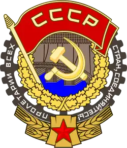 Der Orden besteht aus einem silbernen Abzeichen in der Form eines Zahnrades, umläufig ist das Motto russisch Пролетарии всех стран, соединяйтесь! Proletarii wsech stran, sojedinjaites!, deutsch ‚Proletarier aller Länder, vereinigt Euch!‘ aufgeprägt. In der Mitte ist ein Staudamm mit aufgelegtem Hammer-und-Sichel-Emblem zu sehen, darunter blaues Email für das Wasser. Dieses Motiv wird von einem Eichenlaubkranz umrahmt. Darüber befindet sich eine Rote Fahne mit den Buchstaben СССР, darunter ein Roter Stern zwischen zwei goldenen Weizenähren.