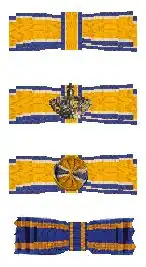 Für Militärverdienste wird der Orden ohne Lorbeerkranz, dafür mit zwei gekreuzten Schwertern durch die Kreuzwinkel verliehen.