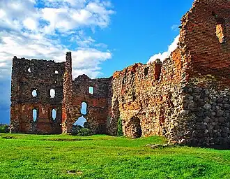 Von der Ordensburg haben sich imposante Mauerreste, darunter ein dreistöckiges Mauerfragment, erhalten, die heute das Wahrzeichen der Stadt sind.