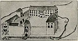 ![]() Nordfassade des Burghauses der Burg Waldau | ||