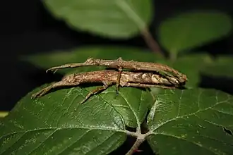 - ↑ Sarah Bank, Thomas R. Buckley, Thies H. Büscher, Joachim Bresseel, Jérôme Constant, Mayk de Haan, Daniel Dittmar, Holger Dräger, Rafhia S. Kahar, Albert Kang, Bruno Kneubühler, Shelley Langton-Myers & Sven Bradler: Reconstructing the nonadaptive radiation of an ancient lineage of ground-dwelling stick insects (Phasmatodea: Heteropterygidae), Systematic Entomology (2021), DOI:10.1111/syen.12472