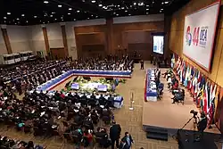 Die Generalversammlung ist das höchste Organ der OAS und umfasst Delegationen aller Mitgliedstaaten, die bei Abstimmungen jeweils eine Stimme haben. Laut Charta erhält die Generalversammlung ein zentrales Entscheidungsmandat bei Fragen der politischen Ausrichtung, inneren Struktur und Funktion der Organisation. Weitere Aufgaben sind Koordinierung der Mitgliedsländer, Budgetplanung sowie die Kontrolle des Generalsekretariats.[20]