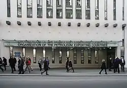 1975 erfolgte die Geiselnahme im Wiener OPEC-Hauptgebäude durch Terroristen unter Führung des Terroristen Carlos. 1979 läutete die zweite Ölkrise ein. Nach der islamischen Revolution wurde der Ölpreis von 15,5 US-Dollar auf 24 US-Dollar pro Barrel angehoben; Libyen, Algerien und der Irak verlangten sogar 30 US-Dollar für ihr Öl. 1980 war der Höhepunkt der Hochpreispolitik der OPEC, Libyen verlangte 41 US-Dollar, Saudi-Arabien 32 US-Dollar und die restlichen OPEC-Staaten 36 US-Dollar pro Barrel. 1981 verringerte sich der Ölabsatz. Die Industriestaaten waren in Rezession und aufgrund der ersten Ölkrise und der hohen Erdölpreise investierten viele Länder in alternative Energiequellen, was in den Jahren 1978 bis 1983 den weltweiten Ölverbrauch um 11 Prozent und den OPEC-Weltmarktanteil auf 40 Prozent senkte. 1982 wurde eine Produktionsdrosselung beschlossen, die jedoch nicht eingehalten wurde. Der OPEC-Anteil an der Weltölförderung sank auf 33 Prozent und 1985 auf nur 30 Prozent, die Förderung senkte sich auf den Tiefstwert von 17,34 Millionen Barrel pro Tag. 1983 wurden die Ölpreise von 34 US-Dollar auf 29 US-Dollar pro Barrel gesenkt, die Förderquote wurde von 18,5 auf 16 Millionen Barrel pro Tag gedrosselt. Das Kartell OPEC verlor die Macht. 1986 stürzte der Preis wegen weltweiter Überproduktion an Rohöl und dem Versuch einiger OPEC-Staaten, ihre Weltmarktstellung durch Preissenkungen zu verbessern, auf weniger als zehn US-Dollar pro Barrel. Durch diesen starken Preisverfall war die OPEC in einer Krise, was die Minister dazu veranlasste, 1988 auch Tagungen mit den Staaten der IPEC, den „Independent Petroleum Exporting Countries“, zu führen, diese hatten aber keinen großen Effekt. 1990 wurde der Richtpreis von 18 US-Dollar auf 21 US-Dollar pro Barrel erhöht. Das Preisziel wurde nur aufgrund des Golfkriegs und der Invasion Kuwaits erreicht. In den Jahren 1990 bis 1994 wurde die Fördermenge um 8,5 Prozent erhöht, trotzdem sanken die Einnahmen durch den Erdölexport von durchschnittlich 143 Milliarden auf 126 Milliarden Dollar pro Jahr. Der Ölpreis lag im April 2005 bei rund 55 US-Dollar pro Barrel. Die US-Ölpreise erklommen am 11. August 2005 das damalige Rekordhoch von 66 US-Dollar. Der Hauptgrund dafür war der chinesische Wirtschaftsboom. 1990 exportierte China fünfmal so viel Öl wie es einführte. Ab 1993 importierte China mehr Öl, als es ausführte. Seit 2003 importiert es mehr Rohöl als Japan. 2004 importierte die Volksrepublik China noch 120 Millionen Tonnen Rohöl und Ölprodukte. In den ersten 11 Monaten 2015 importierte China 6.610.000 Barrel Rohöl täglich bzw. 302,3 Millionen Tonnen, ohne Erdölprodukte.[14] Die OPEC schätzt, dass in den nächsten 20 Jahren rund 23 Prozent des Nachfragewachstums nach Öl von China ausgehen wird. Nach Aussagen des deutschen Verbands der Mineralölindustrie vom Juli 2006 wachsen die verwertbaren Ölreserven seit Jahren schneller als der Bedarf, was nach Marktgesetzen eigentlich zu sinkenden Preisen führen müsste; dies gilt in einem Monopol allerdings nicht. Südkorea schlug vor, als Gegengewicht zur OPEC-Macht den Zusammenschluss der ölimportierenden Länder zu gründen.