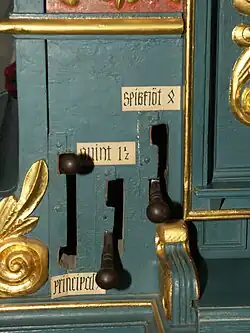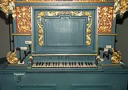 Bemerkenswert ist neben dem musikalischen Engel, der auf der linken Seite den später ergänzten Pfeifenkasten ziert, die Mechanik der Registerzüge, die lotrecht in eisernen Führungen verschoben und eingehakt werden.[4] Eine Zugvorrichtung mithilfe von zwei Lederriemen ermöglicht eine mechanische Windversorgung. Die ursprüngliche Mitteltönige Stimmung ist trotz der zwei Ortswechsel erhalten geblieben. Die Tastatur der Bassoktave mit der kurzen Oktave wurde im Jahr 1681 durch Teilung der Obertasten in eine „gebrochene kurze Oktave“ geändert: D/Fis und E/Gis teilen sich seitdem eine Obertaste.