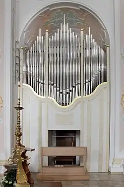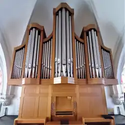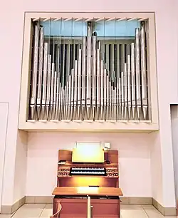 die Orgel wurde 2016 durch ein neues Instrument ersetzt.[13] | |