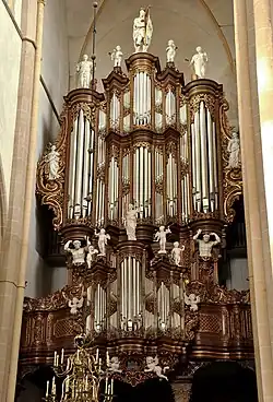 Um 1400 muss bereits eine Orgel vorhanden gewesen sein, da im Jahr 1403 ein Nicolaus Koleman als „die orghaniste“ bezeugt ist.[1] Ob der um 1460 in Kampen ansässige Orgelbauer Jacob van Bilsteyn an der Orgel tätig war, ist nicht unwahrscheinlich, konnte bisher aber urkundlich nicht nachgewiesen werden. Nach 1460 ist von Organisten im Plural die Rede, was nahelegt, dass die Kirche mittlerweile über eine größere Orgel verfügte. Im Jahr 1524 wird die Bezahlung einer größeren Orgel von „meester Johan van Kovelens“ (J. van Covelen) geregelt. In den weiteren Rechnungen von Kovelens zwischen 1527 und 1542 wird neben einem gewissen „meester hans“ auch der Meisterknecht Hendrik Niehoff erwähnt.[1] Eine umfangreiche Sanierung mit einem Erweiterungsumbau fand 1570 durch Casper Noster statt. Im 16. Jahrhundert besaß die Kirche zudem eine zweite, kleinere Orgel mit zwei Manualen. Nicht bekannt ist, wann dieses Instrument abgetragen wurde. Durch die Gebrüder Cornelis und Michael Slegel ist im Jahr 1581 eine Reparatur der großen Orgel bezeugt. Wartungsarbeiten verrichtete in den Jahren 1626 bis 1647 Johan Morleth.[1]