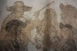Fresko mit Musikanten (1687?) hinter der Orgel, das Aufschluss über die Konturen der damaligen Orgel und Empore gibt. Nach den späteren Erweiterungen der Orgel sind die Fresken heute von unten nicht mehr sichtbar.