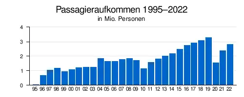 | Jahr | Passagierzahlen | Luftfracht (Tonnen) | Flugbewegungen | ||