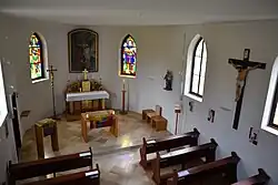 Über dem Altar befindet sich eine Madonnenfigur aus der ersten Hälfte des 19. Jahrhunderts. An der linken Apsiswand ist eine einfache Immakulata aus dem 18. Jahrhundert. Weiters gibt es als Inventar ein kleines Vortragekreuz aus dem Ende des 18. Jahrhunderts. Vor der Kapelle befindet sich ein Wegkreuz.[3]