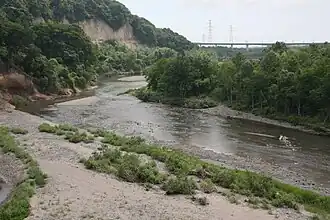 | Mündung | südöstlich des Tōya-Sees und westlich der Stadt Date in die Uchiura-BuchtKoordinaten: 42° 28′ 23″ N, 140° 50′ 10″ O 42° 28′ 23″ N, 140° 50′ 10″ O