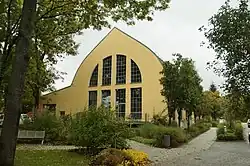 - Im gleichen Jahr 1870 wurde auch für die protestantischen Buben und Mädchen und die katholischen Buben der unteren (östlichen) Stadt ein Doppelschulhaus am Klarenanger (südlicher Dachauplatz) gebaut, genannt die Klarenangerschule. Für die katholischen Mädchen war bereits 1866 die Ostenschule an das ehemalige Kloster St. Klara angebaut worden, die 1873 erweitert wurde.[Anm. 13] Kloster und Schule wurden 1809 während der Schlacht bei Regensburg zerstört.