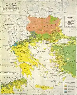 Vor dem Ersten Weltkrieg gab es geschätzt 1,8 Millionen Griechen, die im Osmanischen Reich lebten.[2] Einige prominente osmanische Griechen dienten als osmanische Parlamentsabgeordnete. Im Parlament von 1908 gab es sechsundzwanzig osmanisch-griechische Abgeordnete, aber ihre Zahl sank bis 1914 auf acht.[3]