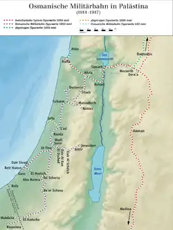 Der gesamte Streckenneubau in Palästina während des Ersten Weltkrieges belief sich auf osmanischer Seite, die Feldbahnen in 600-mm-Spur eingerechnet, auf 437 km.