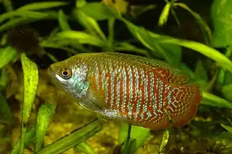 - Zwergfadenfisch (Trichogaster fasciata Bloch & Schneider, 1801)