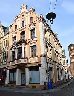 Das dreigeschossige Eckgebäude weist zur Ossenreyerstraße eine schmale, dreiachsige Giebelseite auf, die Längsseite zur Böttcherstraße ist traufständig ausgeführt. Das Haus wurde im Jahr 1890 durch den Umbau eines Vorgängerbaus errichtet und ist durch neobarocke Formen geprägt. Die Giebelseite trägt einen hohen, gestuften Volutengiebel, im ersten Obergeschoss ist ein Erker ausgeführt. Im zweiten Obergeschoss sind aufwändige Fensterverdachungen vorhanden, die sich auch an der Seitenfassade finden; ein Eckpilaster trennt die Seiten dieses Obergeschosses optisch.[1]