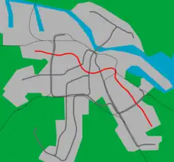 Die Ost-West-Linie wie im Stadtbahn-Plan von 1968 vorgeschlagen