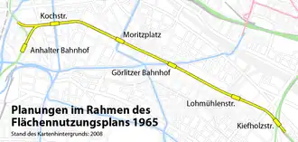Das westliche Ende der Strecke sollte darüber hinaus um einen Stichtunnel zum Potsdamer Platz erweitert werden, so dass die Züge vom Görlitzer Bahnhof aus kommend sowohl auf die südlichen als auch auf die nördlichen Vorortstrecken hätten geleitet werden können.[3]
