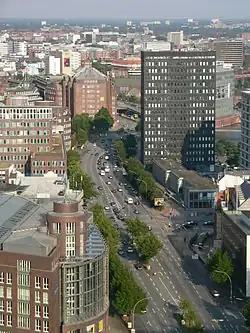 - ↑ Michael Wawoczny: Der Schnitt durch die Stadt. Planungs- und Baugeschichte der Hamburger Ost-West-Straße von 1911 bis heute. In: Hartmut Frank, Ullrich Schwarz (Hrsg.): Schriftenreihe des Hamburgischen Architekturarchivs. 1. Auflage. Dölling und Galitz, Hamburg 1996, ISBN 3-930802-10-4, S. 75.