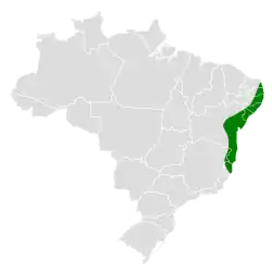 Der Vogel ist endemisch in Brasilien und kommt vom Rio Grande do Norte und Pernambuco südlich bis Minas Gerais und Espírito Santo vor.