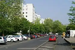 Auf der Fläche eines ehemaligen preußischen Exerzierplatzes im Nordwesten des Ortes wurde Anfang der 1970er-Jahre in verdichteter Hochhausbauweise Wohnraum für 2500 Menschen geschaffen. Ein Teil der Wohnhäuser wurde mit öffentlichen Mitteln gefördert, andere wurden als Eigentumswohnungen verkauft. Die bis zu 14 Etagen hohen Wohnhäuser wurden in der Anfangszeit von der Öffentlichkeit als Musterbeispiel des modernen Sozialen Wohnungsbaus angesehen, doch schon einige Jahre später wurde die Wohnlage von einem Großteil der Bevölkerung als unattraktiv empfunden, sodass der Straßenzug allmählich verwahrloste. Im Jahre 2002 wurde die Siedlung in das Förderungsprogramm Sozialraum mit erhöhtem Erneuerungsbedarf aufgenommen. Im Jahre 2007 lebten in der Siedlung rund 2800 Menschen, von denen rund 70 % einen Migrationshintergrund aufweisen.[27]
