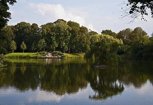Im Zentrum des Parks befindet sich eine Baumterrasse, die vorwiegend mit Linden bepflanzt ist. Dort sollte das Parkrestaurant entstehen.