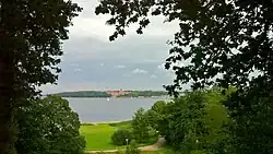 Blick von der Ostseebad-Brücke auf die Flensburger Förde und die Ochseninseln
