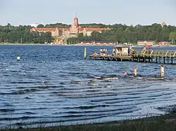 Das nördlich gelegene kostenpflichtige Strandbad Wassersleben,[11] ein Vorort von Flensburg im Gemeindegebiet von Harrislee, ist von Ostseebad durch einen kleinen Spaziergang am Wasser erreichbar. Das zweite Flensburger Strandbad ist Solitüde[11] am gegenüberliegenden Ufer der Förde. Das Strandbad im zu dem Ostseeheilbädern zählendem Glücksburg[11] liegt weiter östlich und ist eher unter der Bezeichnung Glücksburger Promenade bekannt.[13]