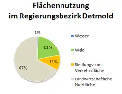 Durch die fruchtbaren Böden gehören weite Teile Ostwestfalen-Lippes, insbesondere der Raum Minden-Ravensberg zum Altsiedelland. Durch intensive, jahrhundertelange menschliche Nutzung ist das Gebiet zu einer vergleichsweise dicht besiedelten, kleinräumigen, sowie auch im Vergleich zum restlichen Nordrhein-Westfalen relativ waldarmen Kulturlandschaft umgewandelt worden. Größere Waldgebiete finden sich im Wesentlichen nur auf den Höhenzügen der Mittelgebirge und machen nur rund 21 % der Fläche aus, was im Landes- und vor allem Bundesvergleich ein niedriger Wert ist. Obwohl im Bundesvergleich dicht besiedelt, hat Ostwestfalen-Lippe im Vergleich zu anderen nordrhein-westfälischen Gebieten einen recht ländlich geprägten Charakter, der sich aus der intensiven und vor allem flächenanteilig großen landwirtschaftlichen Nutzung ergibt. Über zwei Drittel der Fläche sind Äcker oder Weiden.[5]