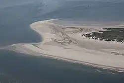Teile der Sandbank fallen bei Niedrigwasser trocken. Östlich, in Richtung Baltrum, grenzt die Sandbank an das mit Tonnen versehene Fahrwasser der Wichter Ee.