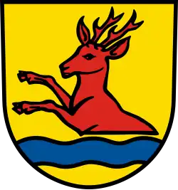 Blasonierung: „In Gold über einem erniedrigten blauen Wellenbalken ein halber roter Rehbock.“
