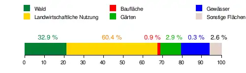 Die Ausdehnung der Gemeinde beträgt von Nord nach Süd 3,9 km, von West nach Ost 5,8 km. Die Gesamtfläche beträgt 11,7 km².