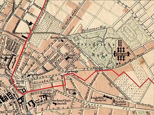 - ↑ Sanwald-Plan Berlin. 1926, Verlag Karl Sanwald / Pasing vor München (Seite nicht mehr abrufbar, festgestellt im Mai 2019. Suche in Webarchiven) Info: Der Link wurde automatisch als defekt markiert. Bitte prüfe den Link gemäß Anleitung und entferne dann diesen Hinweis.