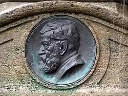 Sein Porträt schmückt jeweils die Fassade des Neuen Rathauses sowie den Rathausbrunnen auf dem Burgplatz in Leipzig.