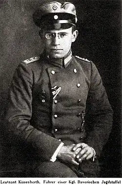 Kissenberth flog eine Albatros D.V mit gelb-weißem Edelweiss am Rumpf. Nach mehr als 12 Luftsiegen auf diesem Flugzeug errang er seinen 19. und letzten Sieg mit einer erbeuteten Sopwith Camel. Zwei Wochen später, am 29. Mai 1918 wurde er bei einer Bruchlandung mit diesem Flugzeug schwer verletzt.
