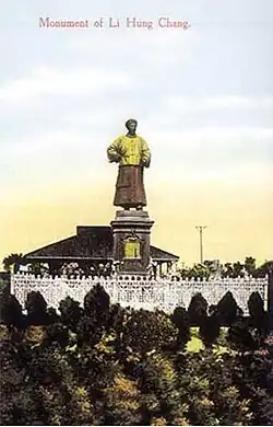 Lang hatte Krupp über seinen Münchner Künstlerfreund Felix von Ende kennengelernt. Dessen Schwester Margarete war Krupps Ehefrau.[4] Im Auftrag der Firma Krupp in Essen schuf Lang zwischen 1893 und 1896 das Li-Hongzhang-Denkmal, ein Bronze-Kolossaldenkmal für den chinesischen General und Staatsmann Li Hongzhang, den „Vizekönig von Zhili“.[5][6] Als einziges Objekt seiner Art in China wurde es 1906 im Garten des für Li Hongzhang erstellten Gedächtnistempels in Shanghai aufgestellt.[7]