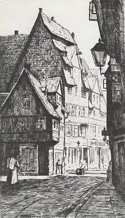 - Langedammstraße von Osten. Radierung 1920