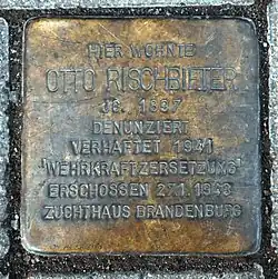Heute erinnert ein Stolperstein in Hannover vor dem Haus in der Kirchröder Straße 100 an Otto Rischbieter.[4]