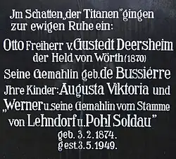 - Gerhard Wulz: Der Kapellenfriedhof in Bad Kissingen. Ein Führer mit Kurzbiografien. Bad Kissingen 2001, ISBN 3-934912-04-4 [hier, wie auf Gedenk- und Grabstein genannt, mit dem Zusatz Freiherr]