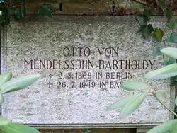 Nach der Machtübertragung an die Nationalsozialisten im Januar 1933 blieb Otto von Mendelssohn Bartholdy in Potsdam. Er wurde als Hauptaktionär der I.G. Farben 1938 mittels Folgeverordnungen zu den Nürnberger Rassegesetzen gezwungen, sein Aufsichtsratmandat niederzulegen.[5] Nach dem Tod seiner als Mischling 2. Grades geltenden Ehefrau Cecile musste er 1943 in das Gärtnerhaus seiner Villa umziehen und war von Deportation bedroht, da er selbst als „Jude“ galt. Nachdem er bereits verhaftet worden war, wurde er auf Intervention des Potsdamer Regierungspräsidenten Graf von Bismarck-Schönhausen wieder freigelassen. Dieser wurde ein Jahr später im Zusammenhang mit dem Attentat vom 20. Juli 1944 selbst verhaftet. Otto von Mendelssohn Bartholdy überlebte das Ende des Zweiten Weltkriegs in Potsdam.[1] Nachdem klar wurde, dass er seine von den Nationalsozialisten enteigneten Besitztümer nicht zurückerhalten würde, sondern dass diese der Verstaatlichung durch die sowjetische Besatzungsmacht unterlagen, wanderte er in die Schweiz aus, wo er vier Jahre nach Kriegsende starb und auf dem Hörnli in Basel beerdigt wurde.